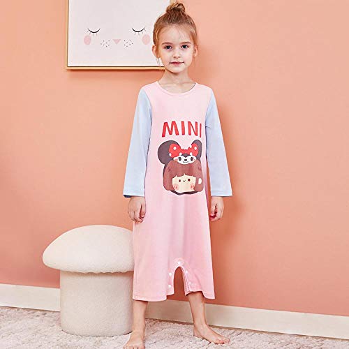 STJDM Camicia da Notte,3-12 Anni Bambino Ragazze Primavera Autunno Camicia da Notte Pigiameria Cotone Manica Lunga Abito da Notte Bambini Cartone Animato Stampato Pigiami 4 t (110 cm) 2213