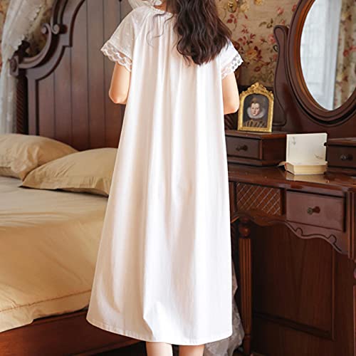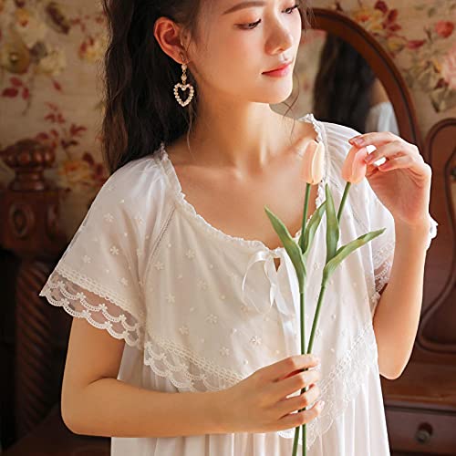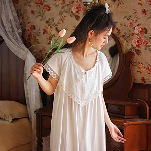 STJDM Camicia da Notte,Indumenti da Notte in Cotone da Donna in Pizzo Bianco Manica a Mantella Abito da Notte Lungo Bianco Vintage Lounge Robe Sleepwear M White