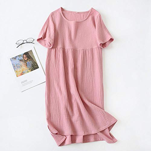 STJDM Camicia da Notte,Camicia da Notte a Maniche Corte in Crepe di Cotone Camicie da Notte da Donna di Puro Colore Camicia da Notte da Notte per Donna XL Rosa