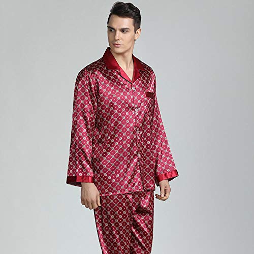 STJDM Camicia da Notte,Pigiama da Uomo in Raso Set da Notte a Maniche Lunghe Set da 2 Pezzi Pantaloni da Camicia Casual Lounge Wear 3XL Plus Size XXXL Red
