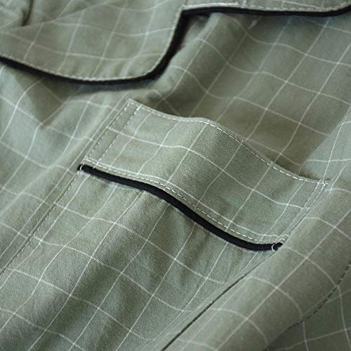 STJDM Camicia da Notte,Plus Size Pigiama da Uomo in Puro Cotone Estivo Imposta Pantaloncini di Cotone Scozzesi Casual Giapponesi da Notte da Uomo Semplice Homewear L Verde