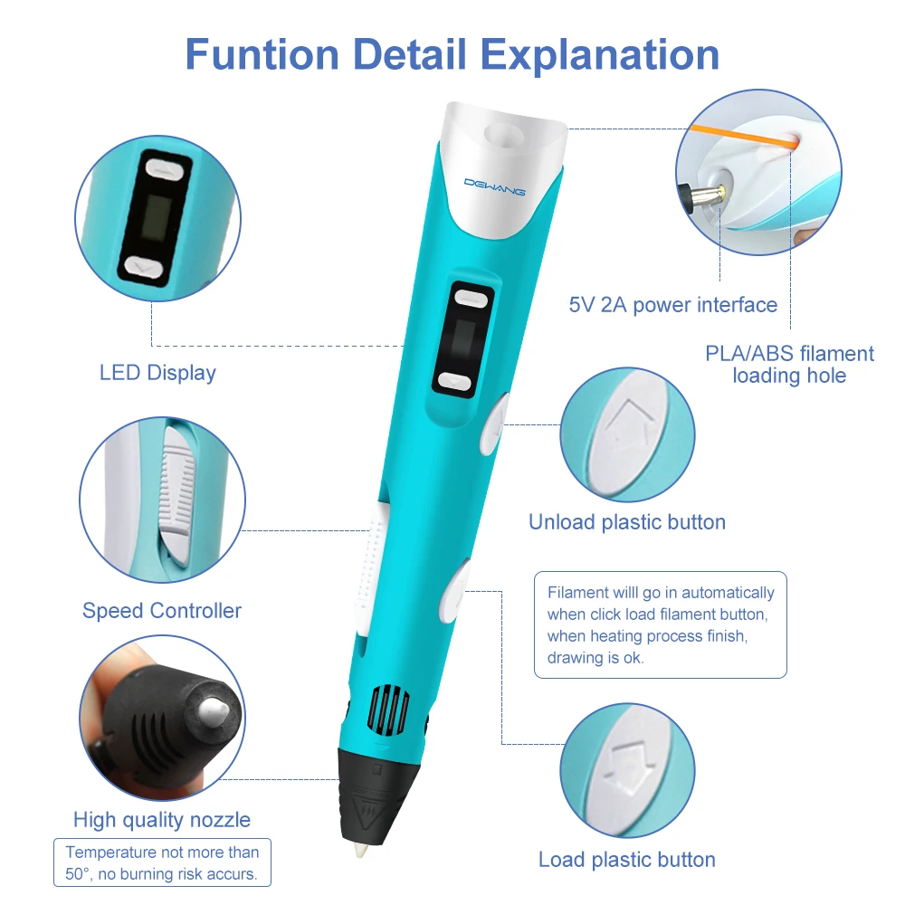 RU Stock Fast ship DEWANG 3D Printer Pen for Kid 3D Printing Pen with LED Screen 3D Pen Compatible PLA ABS Plastic Birthday Gift