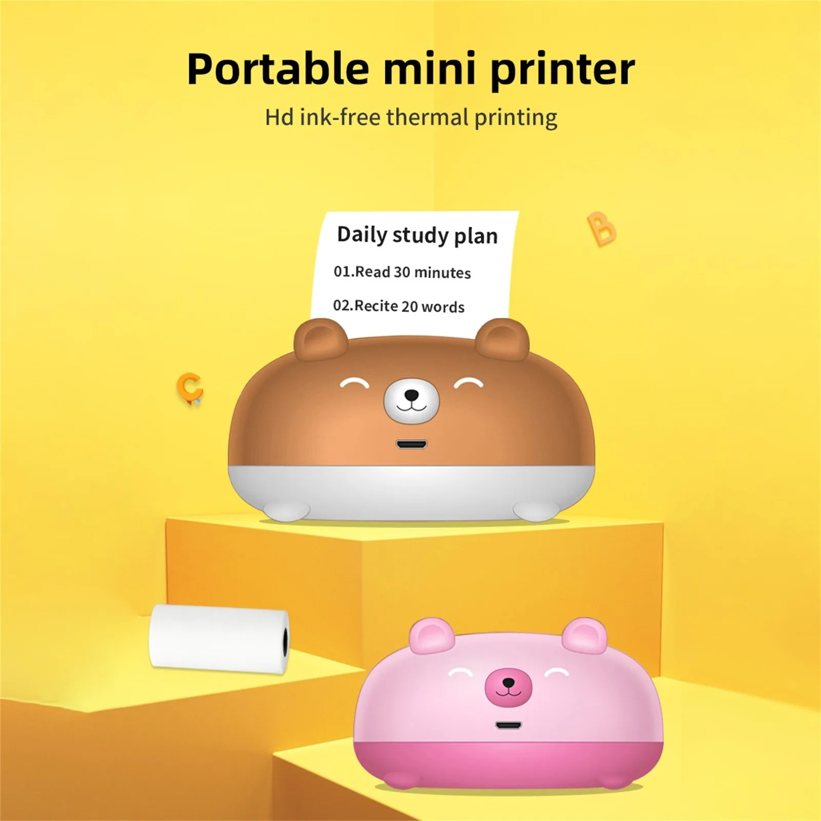 In Stock ! Small Printer Bear Portable Mini Photo Printer Wireless Thermal Bluetooth Mobile Phone Control