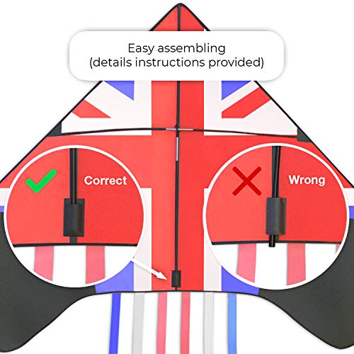 Stoie's Union Jack aquiloni per bambini - aquiloni acrobazie per adulti - aquiloni da spiaggia per bambini - aquiloni e giocattoli volanti - aquiloni per bambini grandi - corda e maniglia da 100 metri