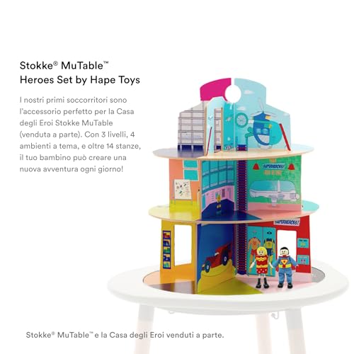 INFINITE AVVENTURE - I nostri accessori in legno sono l'accessorio perfetto per la Casa degli Eroi Stokke MuTable (venduta a parte). Con 3 livelli, 4 ambienti a tema, e oltre 14 stanze, il tuo bambino può creare una nuova avventura ogni giorno!