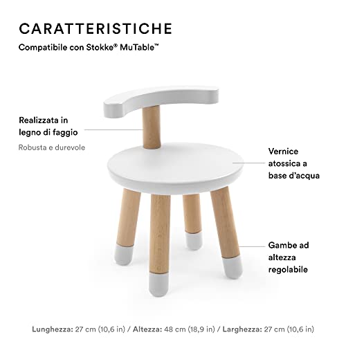 Stokke Sedia MuTable, Bianco - Sedia per la stanza giochi dei bambini con altezza della seduta regolabile - Realizzata in legno di faggio e vernice atossica a base d'acqua