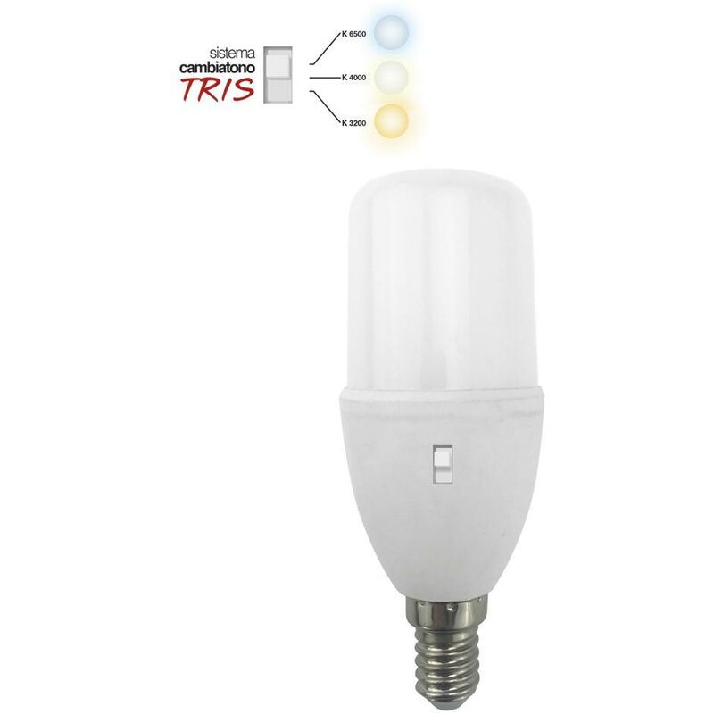 Lampada LED Slim 11W E14 con sistema CAMBIATONO Stone 11071/BNC Lampadina a LED con sistema CAMBIATONO. Hai la possibilità, con un semplice interruttore, di variare il colore della luce della lampada da fredda, naturale a calda. Dimensioni: 42 × 120 mm. Wattaggio: 11W. Lumen: 1250 Lumen. Temperatura: K6500 + K4000 + K3200. Angolo: 300°. Grado di Protezione: IP20. Autonomia: 50.000 ore. Attacco: E14.