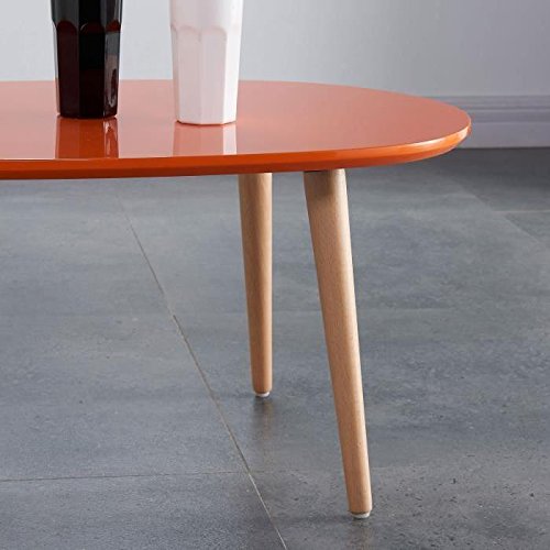 STONE Table basse ovale scandinave orange laqué - L 88 x l 48 cm