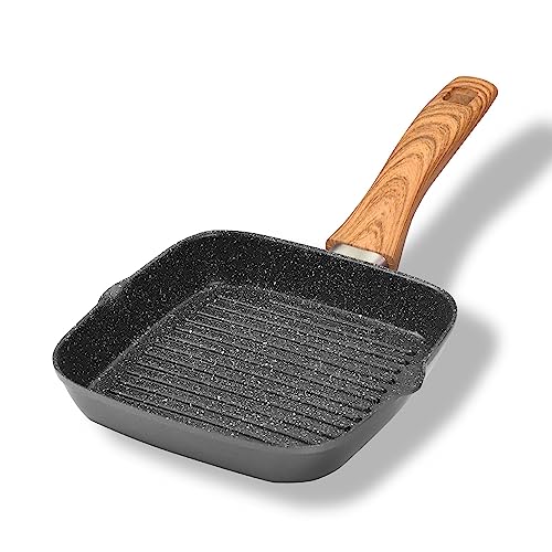 STONELINE BACK TO NATURE Bistecchiera 16x16 cm, Effetto Legno, 2 Beccucci, Padella Grill Padella Griglia, Rivestimento Antiaderente con Vere Particelle di Pietra, a Induzione, Tutti i Piani Cottura