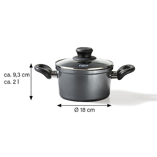 STONELINE Casseruola, Ghisa, Diametro 18 cm, Coperchio in Vetro, Rivestimento Antiaderente