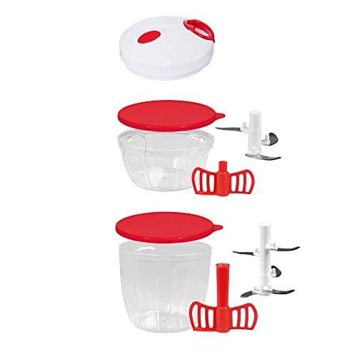 STONELINE Tritatutto rosso, set da 9 pezzi, manuale senza corrente, 900 + 400 ml, taglia cipolla, tritatutto manuale con lame in acciaio inox, tritatutto per verdure, frutta, cipolle
