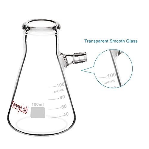 StonyLab 100ml Pallone filtrante in vetro borosilicato, collo a bullone con tubatura - 100ml