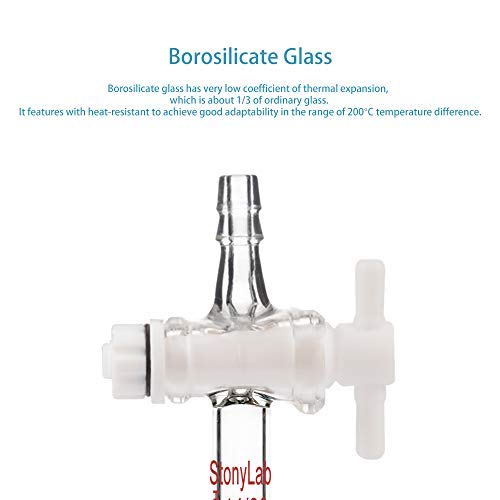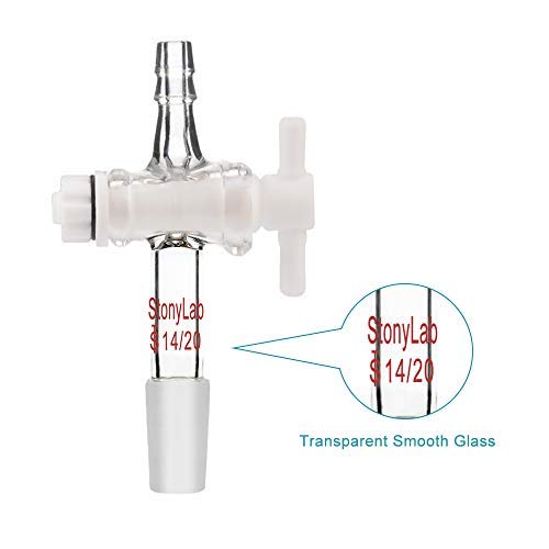 Stonylab Adattatore di Controllo del Flusso di Vuoto Dritto con Rubinetto di Arresto in PTFE, Giunto 14/20 e Raccordo Tubo, Vacuum Flow Control Adapter per Laboratorio