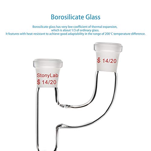 Stonylab Adattatore di Distillazione Claisen a 3 vie con 14/20 Connessione Giunto, Claisen Distillation Adapter per Fornitura Laboratorio, SL-L2L5R1