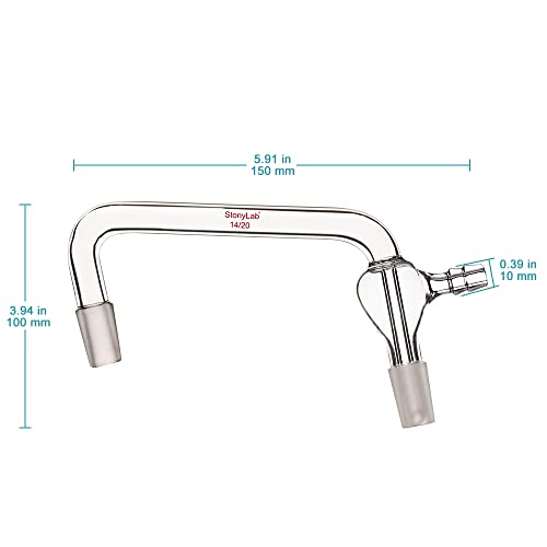 Stonylab Adattatore per Distillazione sottovuoto in Vetro, Adattatore per Chimica Piegata a 75 Gradi e 105 Gradi con Giunti interni Conici Standard 14/20 e Tubo Seghettato Sottovuoto, Lunghezza 100 mm