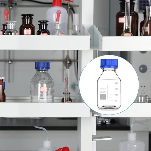 Stonylab Bottiglie di Stoccaggio Graduati con Tappo a Vite GL45, 250 ml Flaconi per Reagenti da Laboratorio Rotondi in Vetro Borosilicato con Tappo a Vite Blu, Confezione da 1