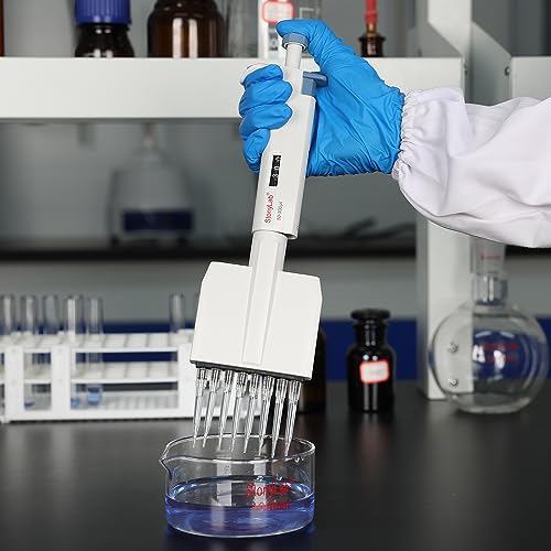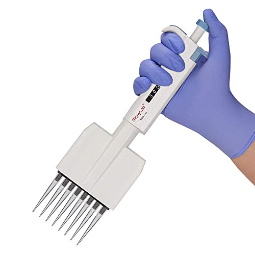 Stonylab Controllore di Pipettatore a 8 Canali, Pipettatore Multicanale Regolabile a Volume Variabile con Cono di Punta Autoclavabile, per la Ricerca di Laboratorio, Multichannel Pipette 50-300µL