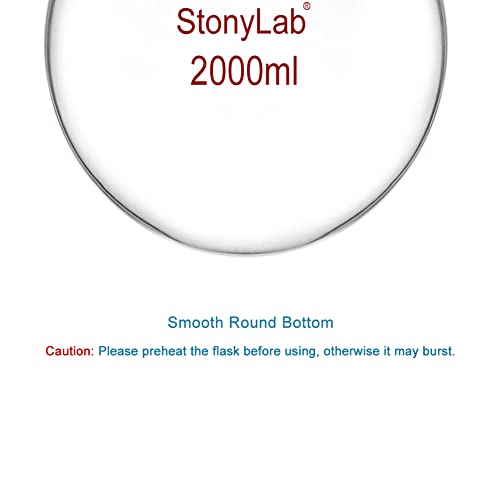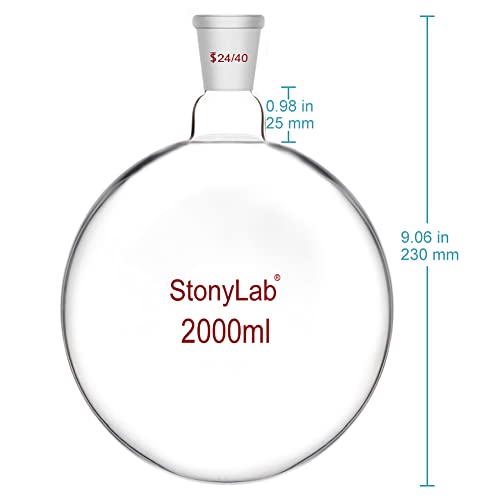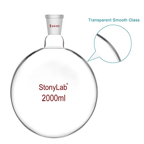 Stonylab Matraccio Laboratorio, Matraccio Fondo Rotondo da Parete Pesante a Collo Singolo in Vetro Borosilicato RBF con Giunto Esterno Standard 24/40, Round Bottom Flask per Laboratorio, 2000 ml