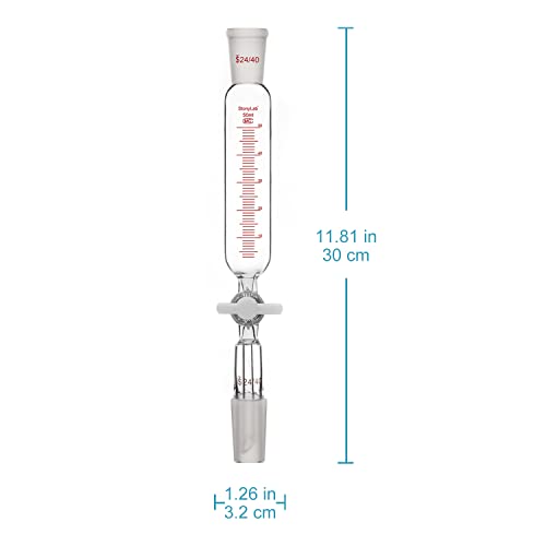 Stonylab Pressione Equalizzazione Aggiunta Imbuto, 24/40 Joint Borosilicato Vetro Laureato Caduta Imbuto con PTFE Stopcock per Laboratorio Imbuto Aggiuntivo, 50 ml