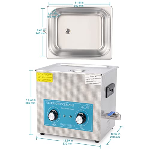 Stonylab Pulitori a Ultrasuoni da Laboratorio, Pulitore ad Ultrasuoni in Acciaio Inossidabile 304 con Pannello di Controllo Meccanico di Riscaldamento e Timer per Laboratorio 40kHz 220V, 10L