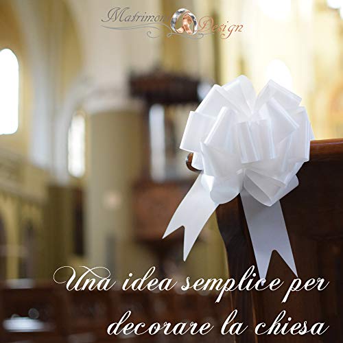 Stookker 50 Coccarde Matrimonio Bianche -TOP QUALITY- 45mm Ideale Per Addobbo Auto - Fiocchi Matrimonio Bianchi Nozze Di Alta Qualità