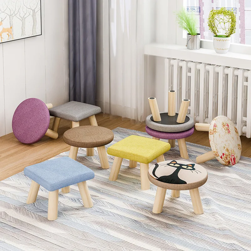 Stool Originality Small The Bench Low Stool Solid Wood Household A Living Room Fabric Art Small Stool Round Stool Sofa Stool