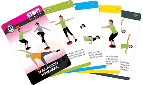 Stop. Carte per esercizi fitness, tutti gli esercizi con rappresentazione grafica e descrizione comprensibile. Pratico, maneggevole, facile da trasportare e utilizzabile ovunque.