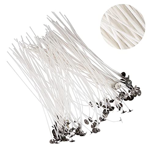 Stoppini per candela, 100 pezzi, 10 cm, pre-cerati, senza fumo, con 1 porta stoppino per la produzione di candele