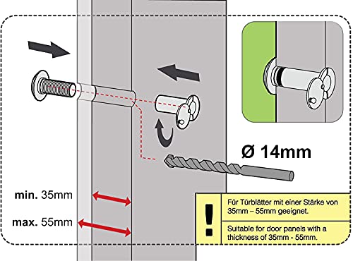 ADATTO PER UN UTILIZZO UNIVERSALE: Grazie al suo design speciale, il nostro spioncino per porta può essere montato su porte con uno spessore minimo di 35 mm fino a un massimo di 55 mm.