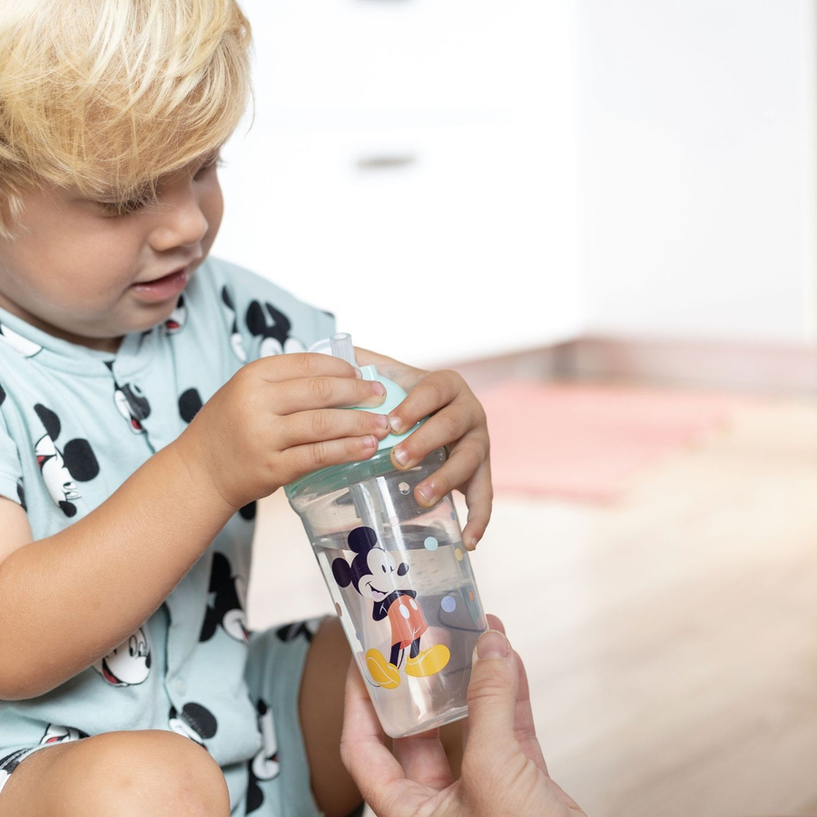 Dettagli del prodotto: La tazza Disney Baby Mickey Mouse, a prova di fuoriuscita, è l'accessorio ideale per i bambini a partire dai 10 mesi. Con una generosa capacità di 295 ml, questa tazza assicura che il bambino rimanga idratato per tutto il giorno Grazie al sistema impermeabile al 100%, potrete dire addio a bevande rovesciate e incidenti indesiderati. Inoltre, questa tazza è priva di BPA, in conformità alle normative vigenti. Materiale e dimensioni: Materiale: polipropilene, silicone La consegna include: 1x tazza con cannuccia Mickey