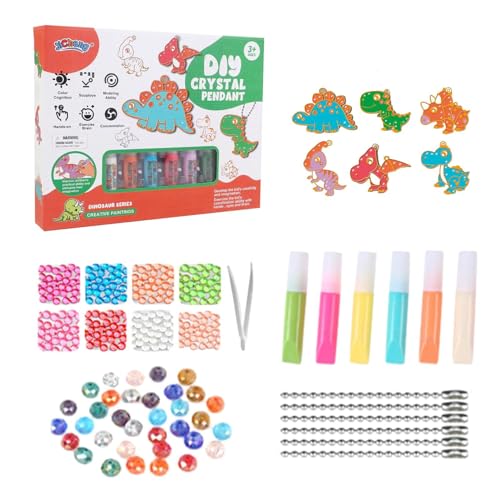 Storaffy Set arti e mestieri con pittura cristallo fai-da-te|Portachiavi natalizi con diamanti artistici|Giocattolo pendente con pittura cristallo fai-da-te|Regali Natale Arti e mestieri, Dinosauro