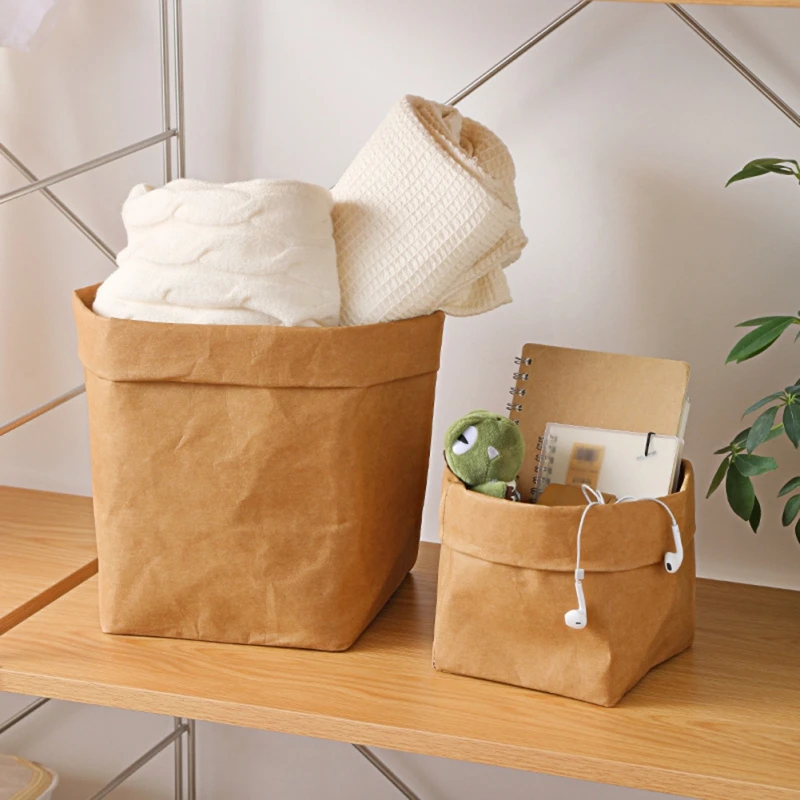 Storage Basket Kraft Paper Bag Washable Kraft Paper Bag Reusable Storage Box