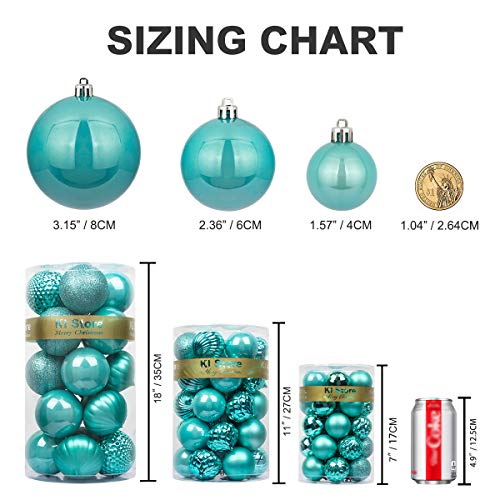 KI Store Art Beauty-40mm verde acqua Palle per Albero di Natale, infrangibili, 34 Pezzi (3 Finiture, 40 mm), Foglia di t, 4 cm