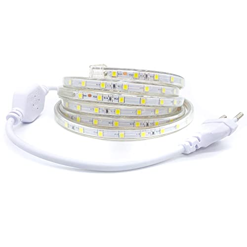 081 Store - Striscia led 2 metri luce bianca freddo, 220v, 60 led/m - strip led impermeabile con spina, luci bianche per scale, luce da soffitto, led cucina, led armadio, led tv, led gaming