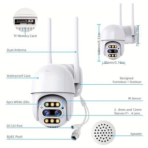 K2 STORE - Telecamera Ip Cam Wifi 4K PTZ Esterno Camera Dome 8x Zoom Lente Rilevatore Movimento App Icsee Videosorveglianza