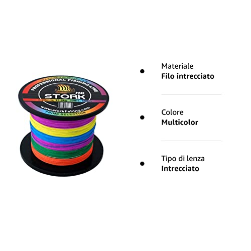 Stork HD, 4-Filo Linea di Pesca Intrecciata 600m (Multicolor, 40 lbs / 18.1 kg / 0.29 mm)