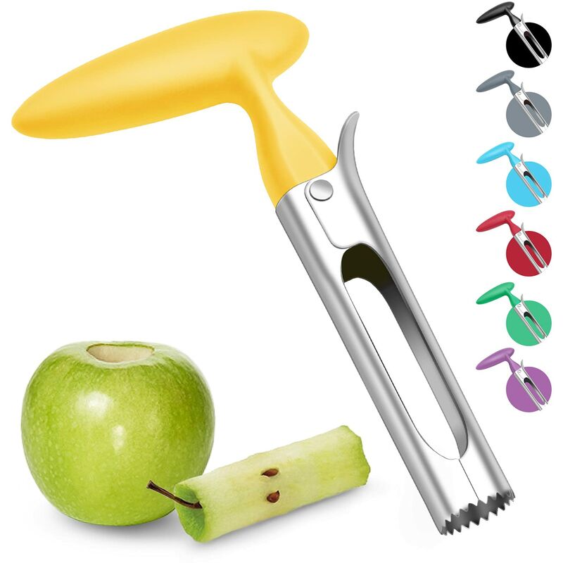Il torsolo per mele ha una lama resistente in acciaio inossidabile 304 per uso alimentare che non si rompe né si piega. La lama del torsolo per mele è lucidata con precisione. La lama seghettata e affilata rimuove facilmente i torsoli di mela, risparmiando energia e tempo. Il manico in ABS di alta qualità ha una forma a ciottolo e si adatta perfettamente al palmo della tua mano per una presa comoda. Spingi la lama nella mela con facilità e controllo preciso, risparmiando tempo e fatica. Dopo l'uso, basta aprire e rimuovere la lama e premere l'apertura della lama per rimuovere il torsolo di mela. Semplice da usare e facile da pulire. Ideale per rimuovere il torsolo da mele, pere e altri frutti in cucina o al ristorante. Un ottimo assistente per fare torte di mele.