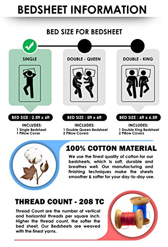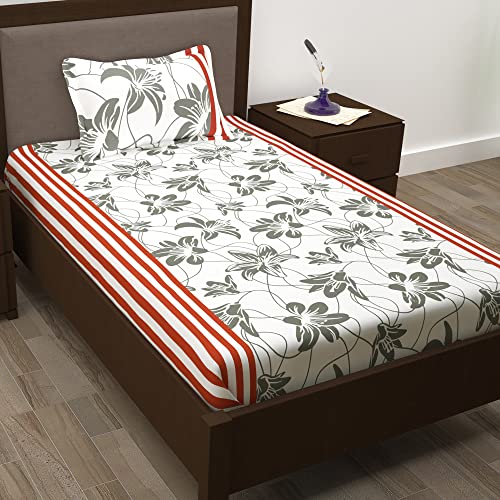 Story@Home Single Bedsheet for Single Bed with 1 Pillow Cover Combo Set - 100% Cotton - Spark Series, 208 TC, Floral Stripes (Red - White)