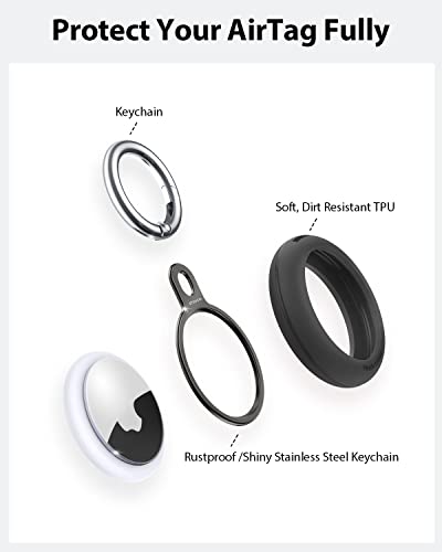 Stouchi 2Pacchi Portachiavi Airtag con Custodia in TPU, Custodia Protettiva per Air Tag in Acciaio Inossidabile Supporto Sicuro Resistente ai Graffi Design Minimalista Compatibile con AirTag 2021