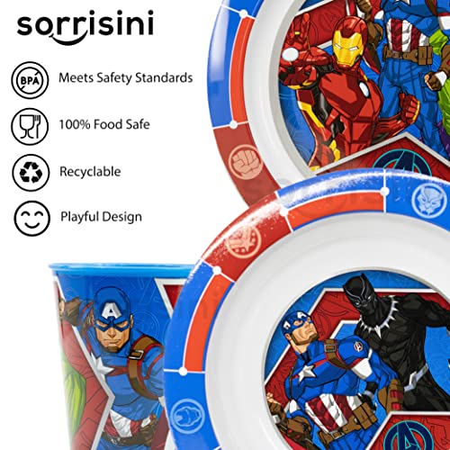 Set di stoviglie per bambini Avengers | Set da pappe riutilizzabile per bambini | Stoviglie con piatto, ciotola per cereali e bicchiere | Set da colazione per bambini