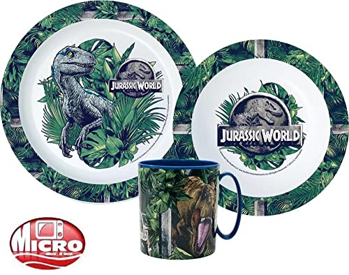 Set di stoviglie per bambini con piatto, ciotola e tazza | Set di stoviglie per ragazzi e ragazze (Jurassic World)