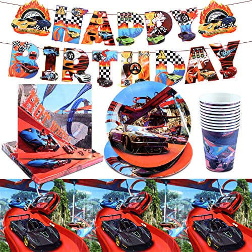 42 Pcs Stoviglie Compleanno Hotwheel Monster Truck, Piatti e Bicchieri Festa Hotwheel, Hotwheel Tovaglioli, Tovaglia, Striscione Buon Compleanno Hotwheel, Hotwheel Birthday Party Set Stoviglie