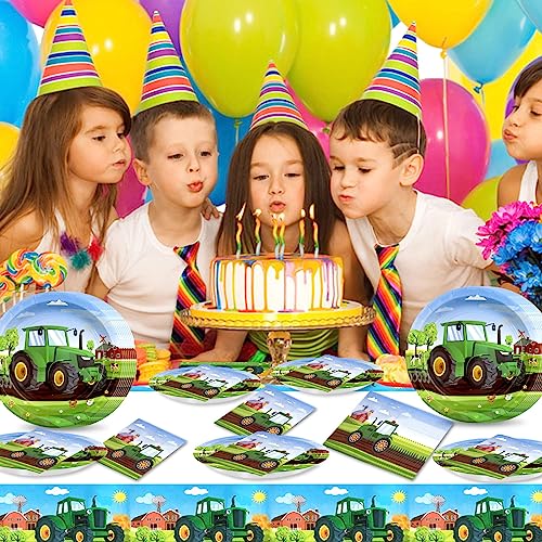 Stoviglie Compleanno Trattore Set 29 Pezzi, Decorazione Compleanno Trattore, Piatti Carta Trattore, Tovaglioli, Tovaglia Compleanno Bambini, Trattore Stoviglie di Carta per Bambini