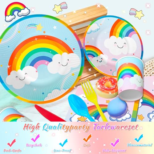✨Ampiamente Applicabile✨ Le nostre arcobaleno festa set da tavola non sono adatte solo per feste di compleanno arcobaleno,feste a tema arcobaleno,ma anche per baby shower,feste per bambini,riunioni di famiglia,picnic e altro ancora.