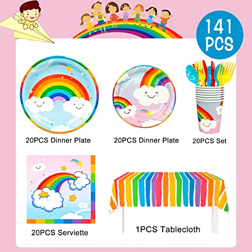 Set di Stoviglie per Feste,141pcs per Compleanno a Tema Arcobaleno Includ Piatti Bicchieri Tovaglioli Tovaglia etc per Bambina