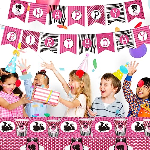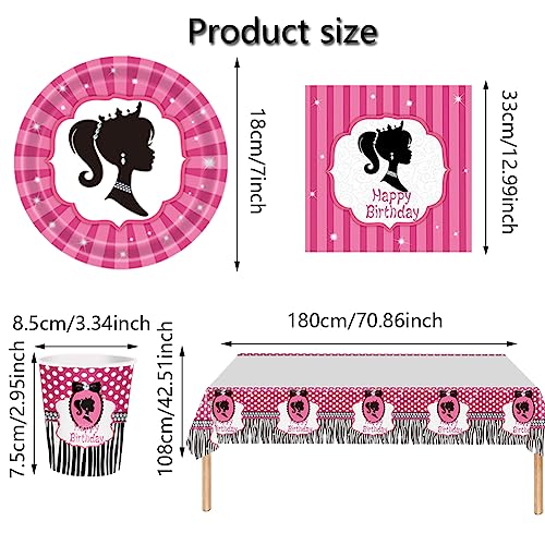Stoviglie per Feste di Barbiprincipessa, Piatti Bicchiere Tovaglioli di Carta da Pranzo Tovaglia di Barbibambole Tema Decorazione, Forniture per Feste di Compleanno per Bambini