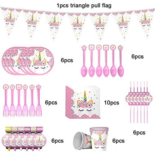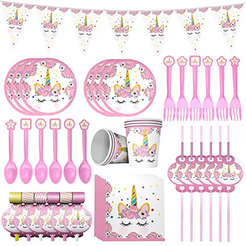 Stoviglie per Feste a Tema, IOSCDH 47 pezzi Unicorn Party Kit Compleanno, Decorazione per feste, Kit per feste forniture, Set di Articoli per Feste, Include Tazze Piatti asciugamani di carta Cannucce