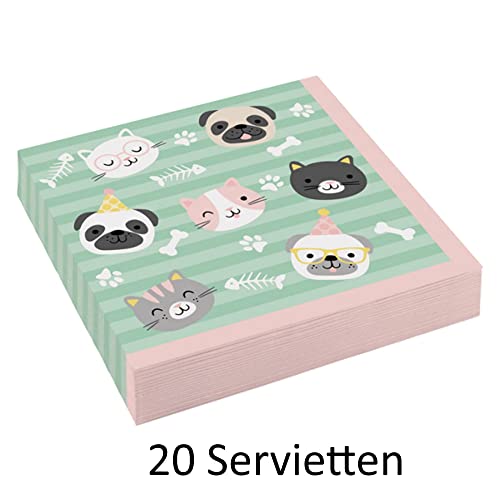 20 tovaglioli per feste, animali domestici, gattini, cani, dimensioni aperte: 33 x 33 cm