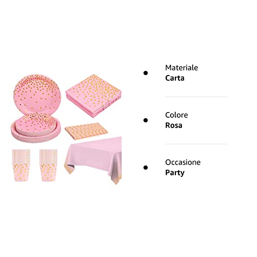 Stoviglie Party, 126 Pezzi Stoviglie Monouso Rosa, Includere un piatto, tovagliolo, tazza e tovaglia, Stoviglie per Nuziale Doccia, Fidanzamento, Matrimonio, Compleanno(25 Ospiti)