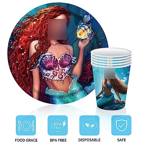 【NESSUNA PULIZIA】 Non è necessario lavare i piatti! Quando la festa è finita, puoi lanciare i piatti e i tovaglioli di carta della sirena. Il set di stoviglie per la festa di compleanno della sirena riduce i tempi e gli sforzi per la pulizia, così puoi goderti momenti più felici con la famiglia o gli amici!